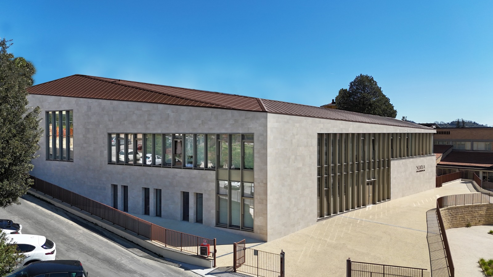 Le aule sono flessibili, rimodulabili a seconda delle esigenze realizzate con materiali contemporanei e naturali, come il legno. La natura entra nella composizione architettonica da ogni parte. Un edificio capace di migliorare sia il tessuto urbano circostante, che la vita di chi quotidianamente lo vive.
